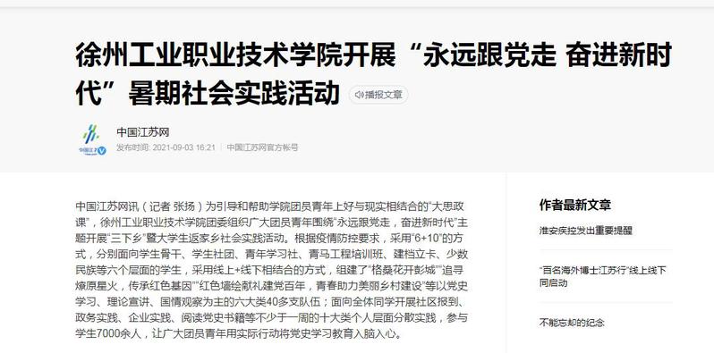 将實地實踐觀察與思想認識提升相結合,突出活動導向性。各實踐團隊堅持從思想政治引領出發設計開展活動,開展專題學習、主題宣講等活動。機電工程學院“循紅色足迹 講黨員故事”實踐團前往淮海戰役紀念館、運河支隊抗日紀念館、徐州市檔案館、革命烈士吳亞魯革命活動舊址參觀學習中國共産黨百年奮鬥的光輝曆程,激勵團員青年努力學習,踏實工作,赓續紅色血脈,開創美好未來;汽車工程學院“青春向黨”實踐團走進淮海戰役紀念館、徐州市下水道四班黨支部、賈汪區馬莊、王傑烈士紀念館等地追溯紅色記憶,激發同學們在黨史學習教育中傳承紅色基因、擔當時代責任、汲取奮進力量的決心;化學工程學院“憶往昔話初心 傳承紅色基因”實踐團成員返家鄉向少年兒童、社區居民宣講紅色故事,引領青少年追尋紅色足迹,接受紅色洗禮,秉承革命先輩遺志,踐行青春使命;工商管理學院“民族團結我踐行”暑期社會實踐6名西藏籍學生赴南京國際博覽中心,學習參觀以“百年征程、初心永恒”為主題的中國共産黨在江蘇曆史展,了解中國共産黨在江蘇波瀾壯闊的曆史,回到家鄉後圍繞“從黨史學習教育中汲取砥砺前行的力量”将所學所得進行宣講。引導和幫助廣大青年在實踐中形成更加理性客觀、更加全面正确的思想認識。