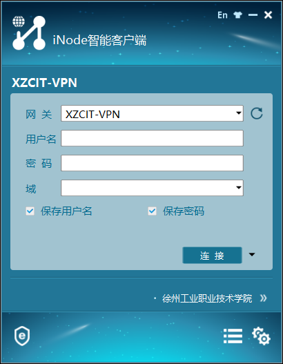 網關選擇默認的XZCIT-VPN,用戶名及密碼與數字化平台用戶名及密碼一緻,域無需填寫。